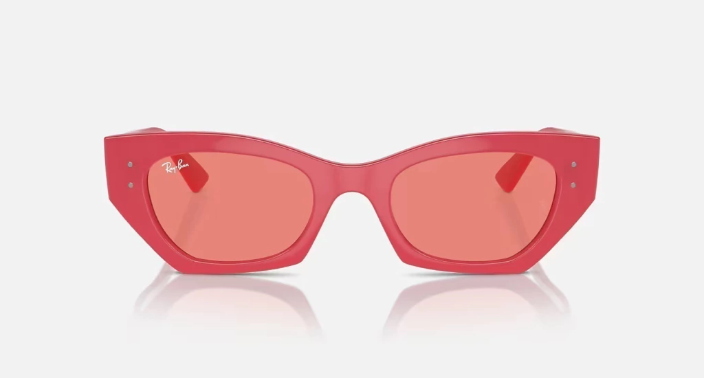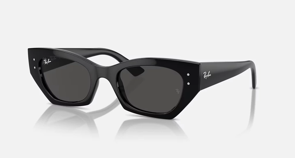RB 4430 Zena es una nueva forma cat-eye unisex hecha con nylon de origen biológico. Viene en cuatro combinaciones de colores tono sobre tono, desde negro clásico, blanco, lila y rojo cereza.
